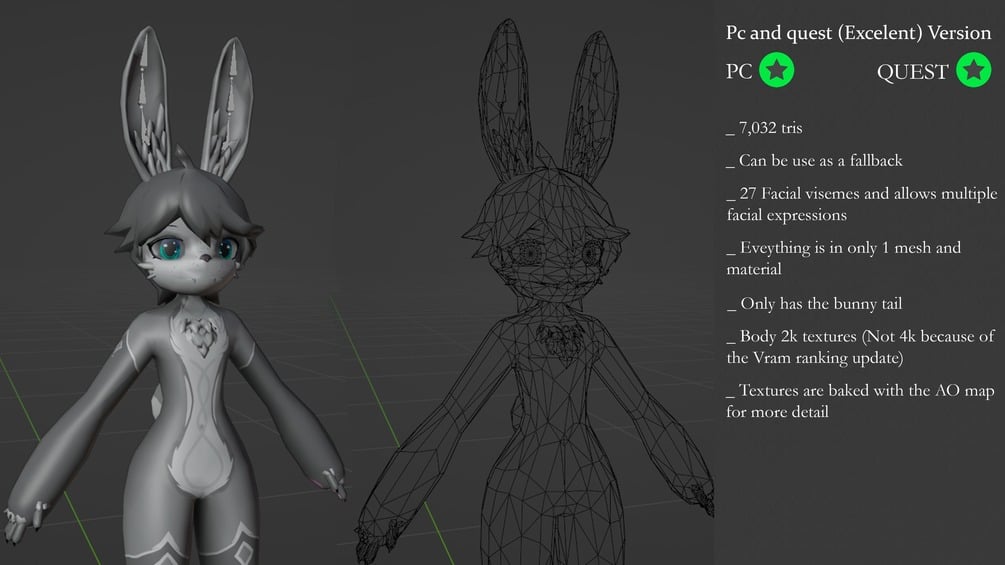 - Good ranking avatar for Pc (Could be excelent if you remove and stick to 1 tail) and an excelent version too for PC and Quest that can be used as a fallback